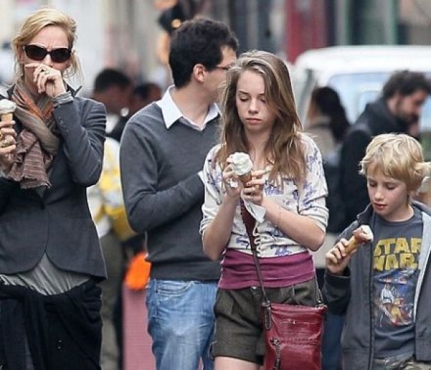 Actrita in varsta de 40 de ani, impreuna cu fetita ei, Maya de 12 ani, si baietelul Levon, de 9 ani, au savurat cate o inghetata, rataciti pe strazile din "orasul luminilor".