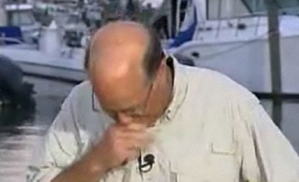 Potter se afla in Louisiana, pentru a realiza materiale despre deversarea de petrol din Golful Mexic si s-a trezit cu o musca uriasa pe gat, scrie mediaite.com .