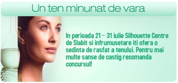 Fii chiar tu castigatoarea unei sedinte de rasfat a tenului la Silhouette Centre de Slabit si Infrumusetare si povesteste-ne si noua cum a fost. Testimonialul tau va face parte dintr-un articol pe Feminis.ro. Experienta ta ofera argumentul final!