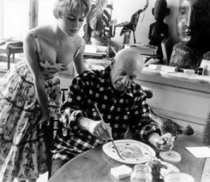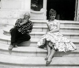 Brigitte Bardot l-a vizitat pe Pablo Picasso la studioul sau, la Vallauris, in afara orasului Cannes, in timpul festivalului de film din 1956 - unii au speculat ca ea a incercat, de fapt, sa il convinga pe pictor sa o transforme pe ea in cea mai noua muza a lui. In cele din urma, se pare ca Pablo Picasso este chiar captivat de ea - si de imbufnarea ei. Sursa.