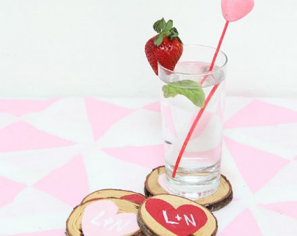 O idee DIY foarte ingenioasa. Ia o creanga mai groasa si tai-o „felii”. Daca vrei sa pregatesti un cadou pentru persoana iubita, foloseste rosu, daca este pentru un membru drag din familie, poti apela la roz. Scrie „Te iubesc!” si ai terminat.