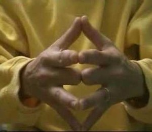 Pentru a intelege, trebuie sa tii palmele fata in fata, sa indoi degetele mijlocii si sa le pozitionezi ca in imaginea de mai jos.