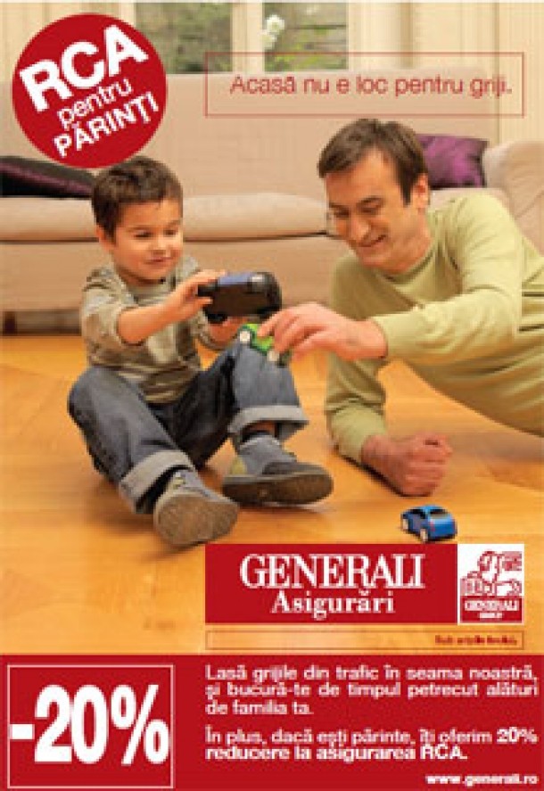 Din respect pentru prioritatile mamicilor responsabile, Generali Asigurari a lansat oferta RCA 2010/2011 pentru parinti. Lasati grijile din trafic in seama specialistilor si bucurati-va de mai mult timp alaturi de cei mici.