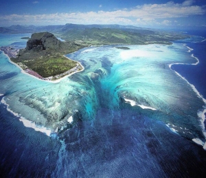 Dacă te uiți de deasupra la Maurițius, în Oceanul Indian, pare ca și când ar fi localizată chiar lângă o cascadă subacvatică. Cu toate acestea, acest fenomen este doar o iluzie optică creată de alunecarea nisipului.