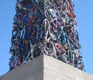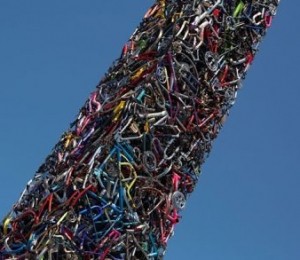 O metoda eficienta de a depozita bicicletele, un monument de cultura sau un fel de a-ti aminti ca mersul pe bicicleta este sanatos si mai ieftin decat sa mergi cu masina, s-a motivat artistul creatia.