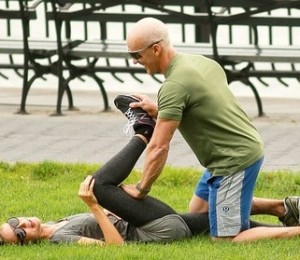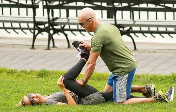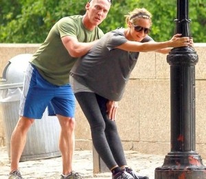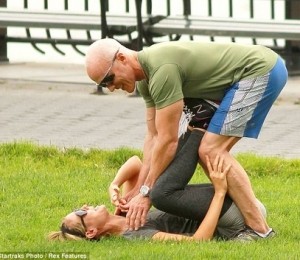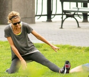 Iesita in parc pentru a face exercitii alaturi de David Kirsch, antrenorul personal, Heidi a fost pusa in cele mai ciudate pozitii pentru a face exercitiile recomandate de acesta. Chiar intr-una din poze Heidi sta intinsa pe iarba iar David sta deasupra ei impingandu-i genunchii cat mai aproape de piept.