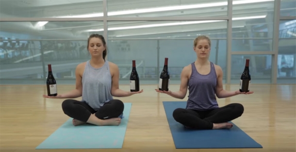 Tot ceea ce ai nevoie sunt câteva sticle de Pinot Noir şi Sauvignon Blanc. Filmuleţul a fost inspirat de un instructor pe nume April Storey şi de antrenamentele ei care implică exerciţii cu sticle de vin (gândeşte-te că în loc de gantere la exerciţiile pentru braţe, vei ţine în mâini sticle de vin). Iar dacă te întrebai, află că o sticlă de vin cântăreşte aproximativ 1,4 kilograme.