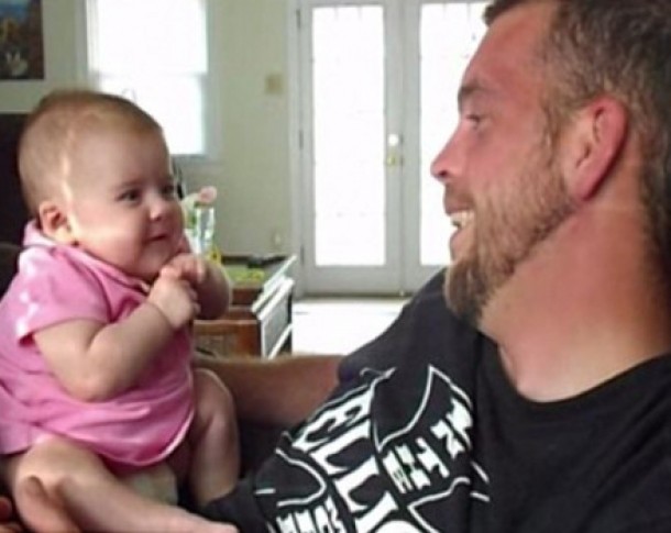 Mama bebelusului a postat acest video pe Youtube, specificand varsta micutei care, in mod surprinzator, printre sunetele scoase reuseste sa isi imite tatal care ii spune "I love you".