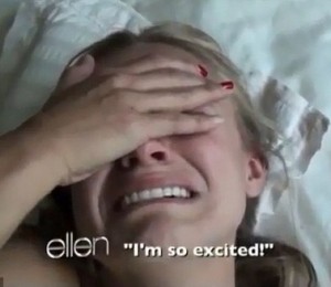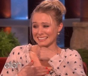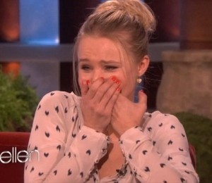 Dar nici Ellen nu a lasat o astfel de ocazie sa treaca, carcotasa gazda s-a prefacut ca invita in scena niste oameni cu un lenes, fix in momentul in care Kristen se linistise, doar pentru ca aceasta sa rabufneasca din nou in lacrimi.