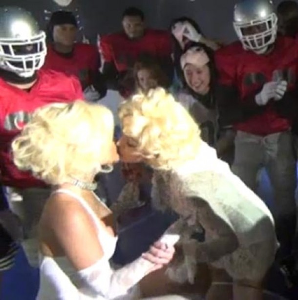 Dupa ce a suflat lumanarile, Madonna s-a intins sa o felicite pe Nicki, in schimb a facut mai mult decat atat, a sarutat-o pe gura pe aceasta, toti din jur incepand sa aplaude.