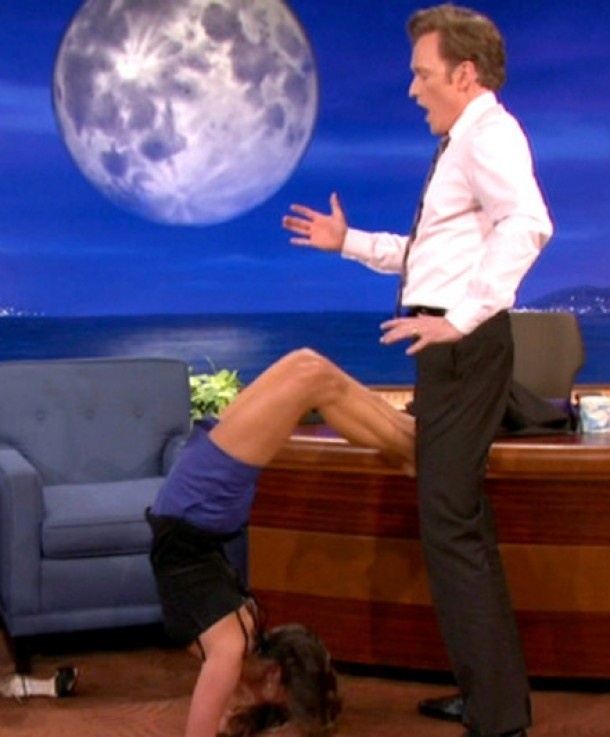 In incercarea de a demonstra o pozitie de yoga, Nina Dobrev l-a folosit drept punct de sprijin pe prezentatorul emisiunii. In timp ce se afla in pozitia denumita "Scorpionul", actrita a zabovit cu picioarele pentru o clipa in zona intima a gazdei emisiunii, facandu-l sa vibreze de emotie.